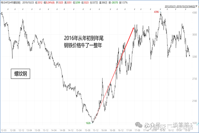 再比如《十三五规划》的第一年,2016年,供给侧改革闪亮登场,低迷了五年的钢铁等国内商品重回牛市,一牛就是一整年。