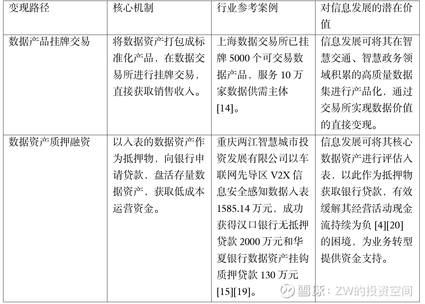 表3-1:信息发展数据资产变现路径分析