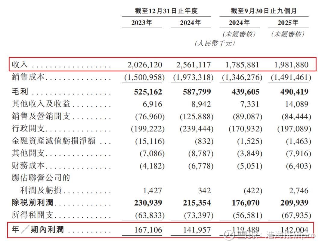 《招股说明书》显示,在过去的2023年、2024年和2025年前九个月,公司的营业收入分别为人民币20.26亿元、25.61亿元和19.82亿元,相应的净利润分别为1.67亿元、1.42亿元和1.42亿元。2024年营收增幅达26.4%,展现出了强劲的市场扩张能力,然而,在这收入大增的背后,其净利润却呈现波动态势,2024年净利润同比下降15%,这种“增收不增利”的现象反映出公司在高速扩张过程中面临的盈利挑战。