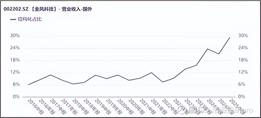 数据来看,自2023年以来,金风的海外收入占比快速上升。2025年上半年,占比近三成。对比来看,海外业务毛利率超国内近5%(2025年上半年,国外收入毛利率18.74%,国内收入毛利率13.94%),高毛利的海外业务占比提升,自然拉动整体毛利率上升。