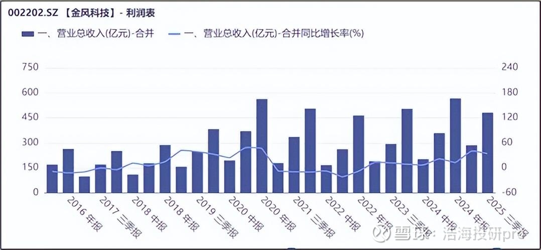 2024年开始,面对国内市场的“价格战”,金风开始加速拓展海外市场。另外一方面,随着新能源业务发展,以及储能业务的发展,风电业务“难消纳”问题得到有效解决,金风收入开始修复。2025年前三季度,金风营业收入同比增长约34%,业绩修复效果明显。