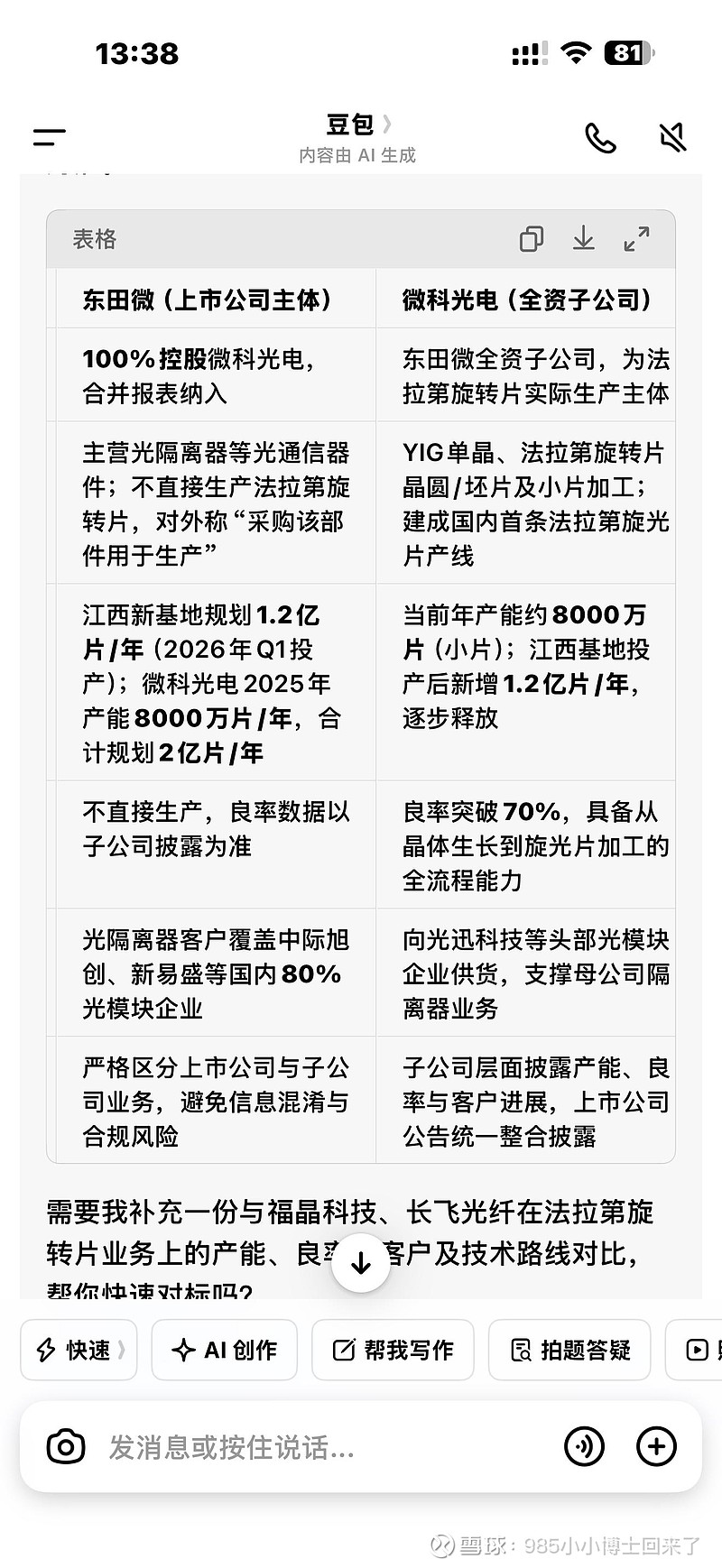 东田微被称为YIG扩产大户,却在投资者平台宣称不生产法拉第旋转片,核心原因在于生产主体、产品形态与披露口径的差异,具体如下: