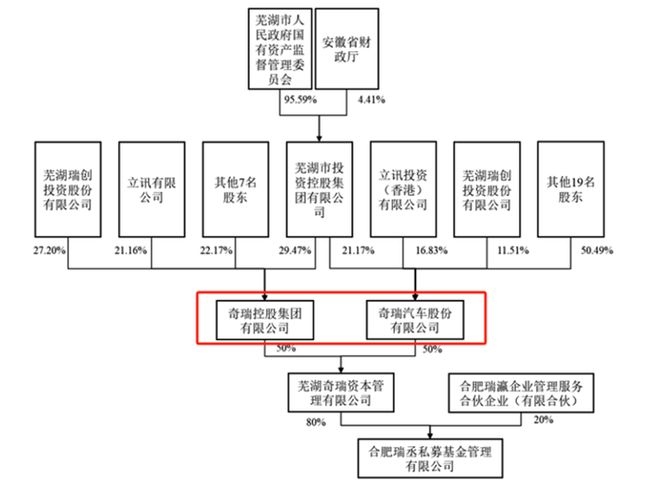 合肥瑞丞的控股股东为奇瑞资本(持有其80%股权),奇瑞资本的股东为奇瑞控股和奇瑞汽车,各持50%股权;往上追溯还可看到芜湖国资和安徽财政厅的身影。可以说,合肥瑞丞是奇瑞旗下的CVC投资平台,也是奇瑞延伸产业布局的关键抓手。