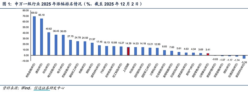一年马上结束了,看了一下行业涨幅榜,最强的竟然是有色,涨价逻辑太顺了,果然还是要家里有矿。