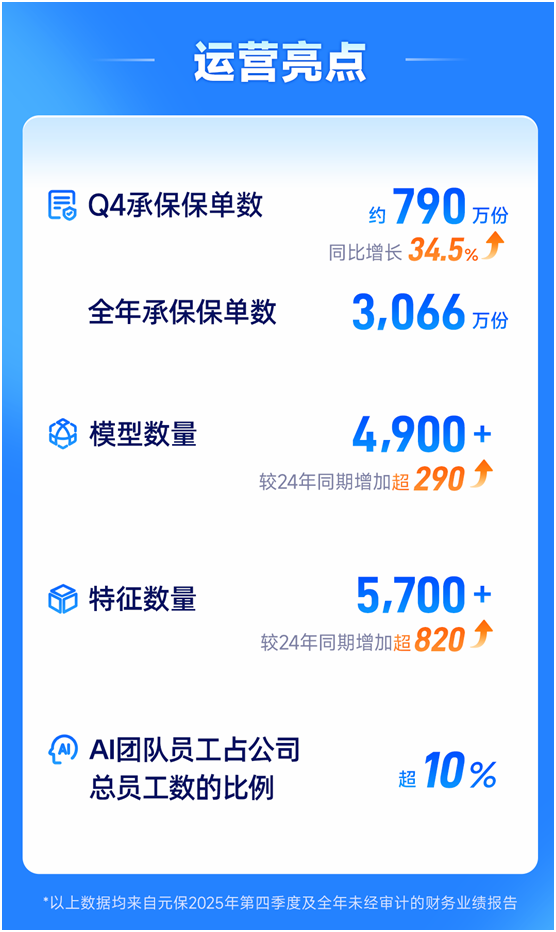 截至2025年底,元保模型网络扩充至超过4900个模型+5700个特征,较上年新增290个模型和820个特征。这套深度集成模型打通了用户、媒体、产品三大维度,形成保险找人的飞轮效应。
