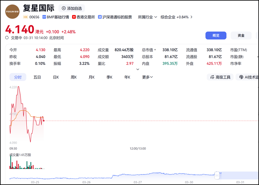 港股这位置,4块钱出头的复星国际,说实话,看着确实有点便宜。300多亿港币的市值,甚至比不上它手里攥着的几块核心资产。