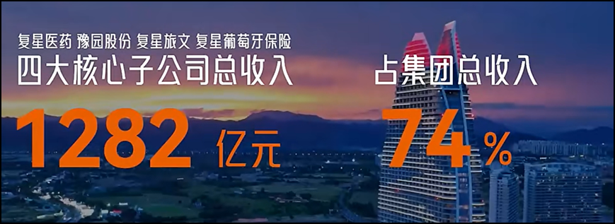 虽然2025年总营收1734.3亿元略有波动,但如果我们把目光聚焦到四大核心子公司,复星医药、豫园股份、复星葡萄牙保险和复星旅文上,情况就不一样了。四大核心子公司总收入达1282亿元,占集团总收入的比重同比上升3个百分点,达到74%。