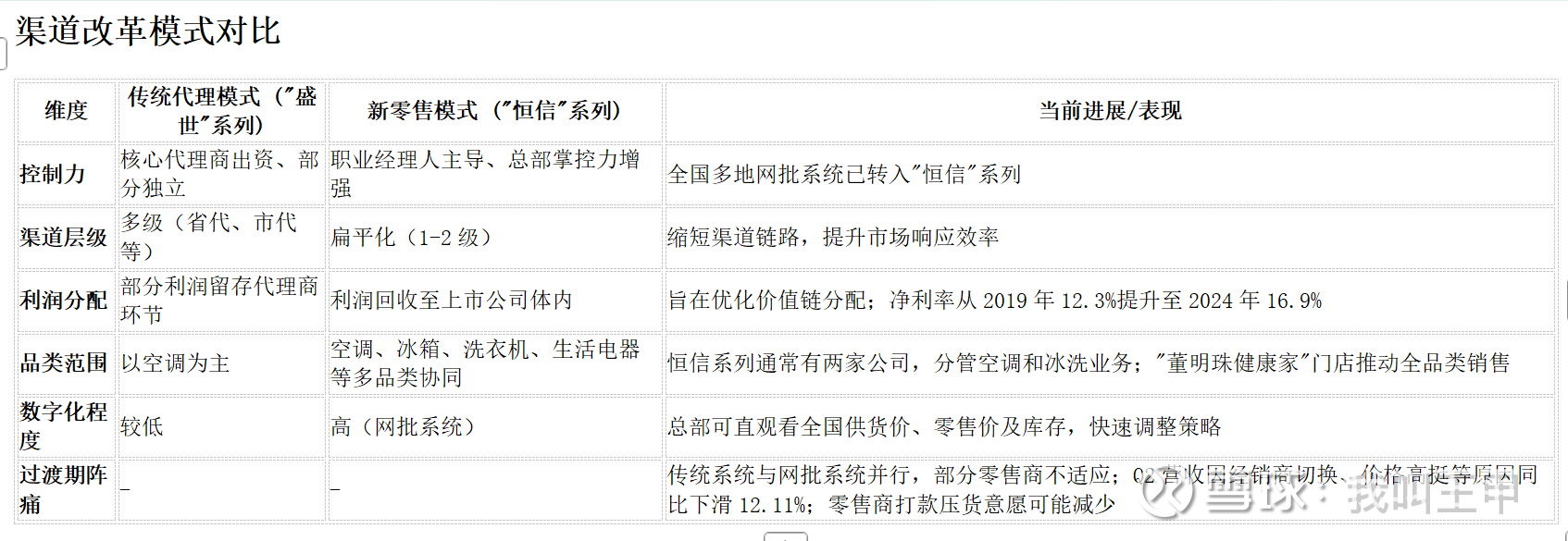 · 渠道伙伴的适应性:改革触及原有代理商利益,如何平衡各方利益、稳定军心至关重要。有零售商表示"格力空调的渠道实在太乱了,基本上每年都要折腾一轮",反映了渠道伙伴可能需要时间适应新模式。