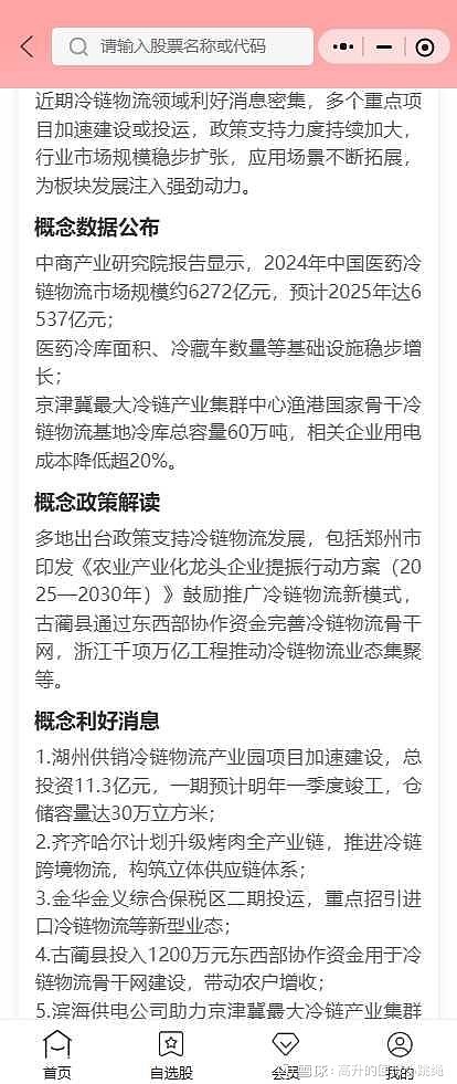 网上消息太多有点看不过来了,在希财舆情宝看了下这个板块,真的很清晰:近期冷链物流领域利好消息密集,多个重点项目加速建设或投运,政策支持力度持续加大,行业市场规模稳步扩张,应用场景不断拓展,为板块发展注入强劲动力。机构给出的判断也是长期向好。