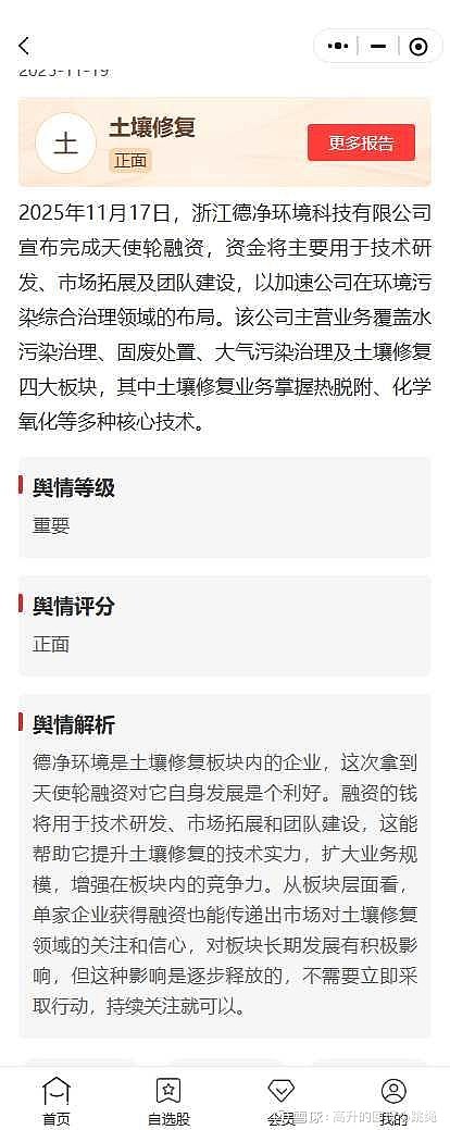 不太能看懂大篇分析,在希财舆情宝看了眼这个板块的最新分析:近期土壤修复概念板块舆情以中性为主,11月19日披露浙江德净环境科技完成天使轮融资,资金将用于技术研发、市场拓展及团队建设,该公司土壤修复业务掌握多种核心技术,对板块形成正面支撑。