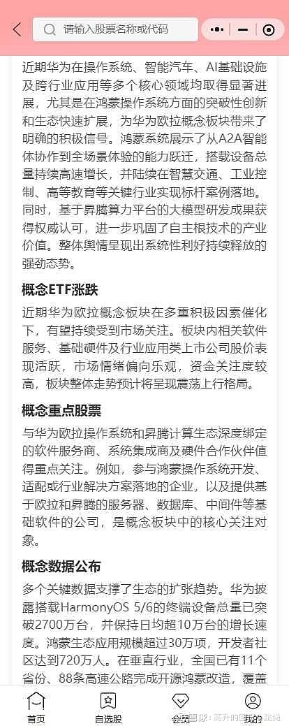 希财舆情宝上对华为欧拉板块的舆情评分达到了91分的强烈正面,除了分析还提示了当前最新的机构观点:市场分析普遍关注华为在定义下一代AI应用交互规则方面的进展,认为鸿蒙系统通过A2A智能体协作、意图框架等创新,正在构建全新的流量入口和战略窗口。机构看好华为依托全栈闭环生态构建的壁垒,特别是在国产替代背景下,其在教育、工业、交通等B端和G端市场的加速渗透能力。昇腾算力平台与大模型的协同发展也被视为巩固长期竞争力的关键。