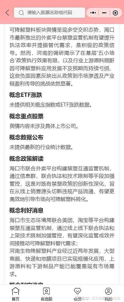 希财舆情宝上现在对可降解塑料的判断是弱中性:可降解塑料板块舆情呈现多空交织态势,海口市最新推出的外卖平台禁塑监管机制有望提升执法效率并提振替代需求,是积极的政策信号。然而,河南的调研揭示了在基层'五小场合'政策执行效果有限,以及行业上游原料顺酐因可降解塑料应用发展不及预期而持续亏损,这些负面因素反映出从政策到市场渗透及产业链盈利传导的挑战依然显著。
