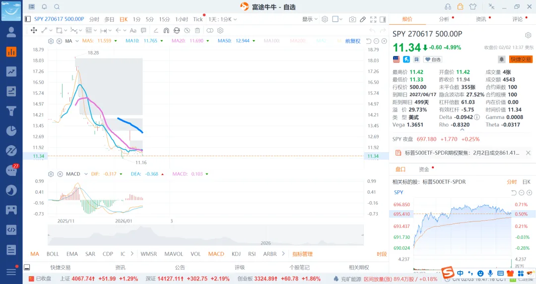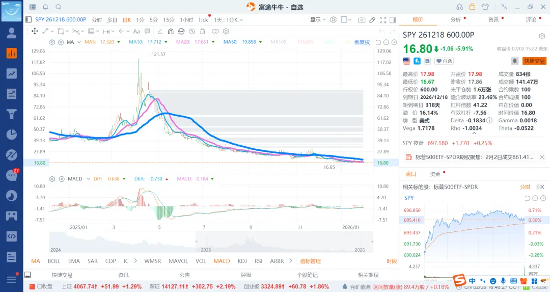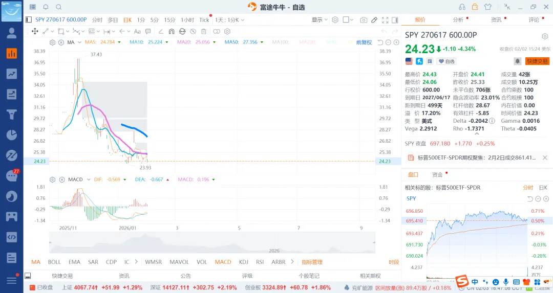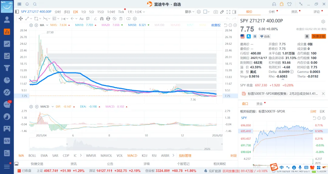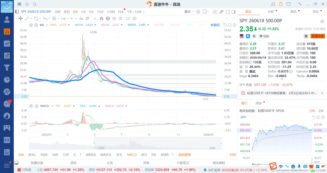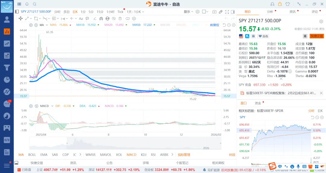基本可以选择26月6月,12月和27年5月和12月4个期权就行了,前面的选择put600和500的就差不多了,后边选择500和400的即可。