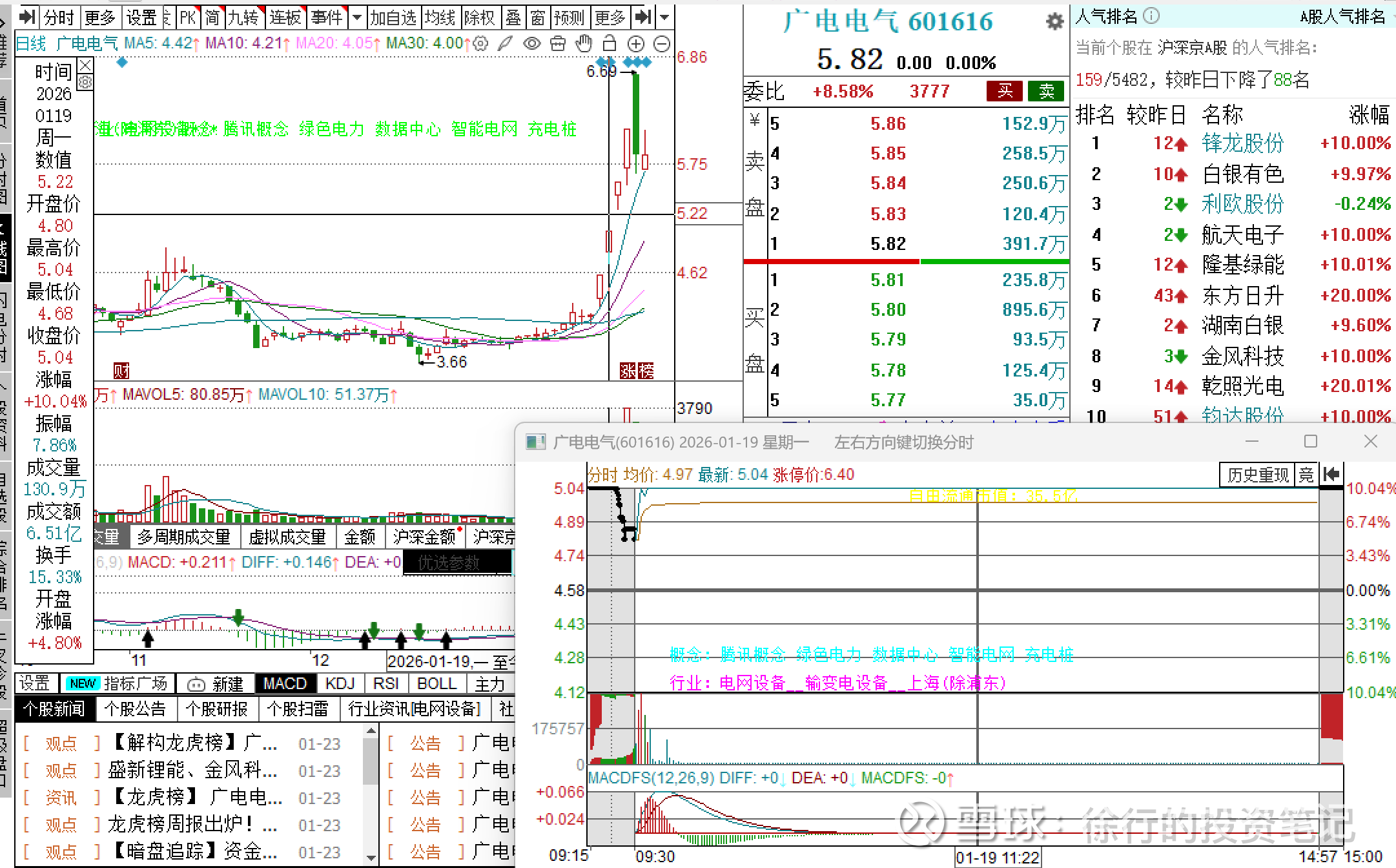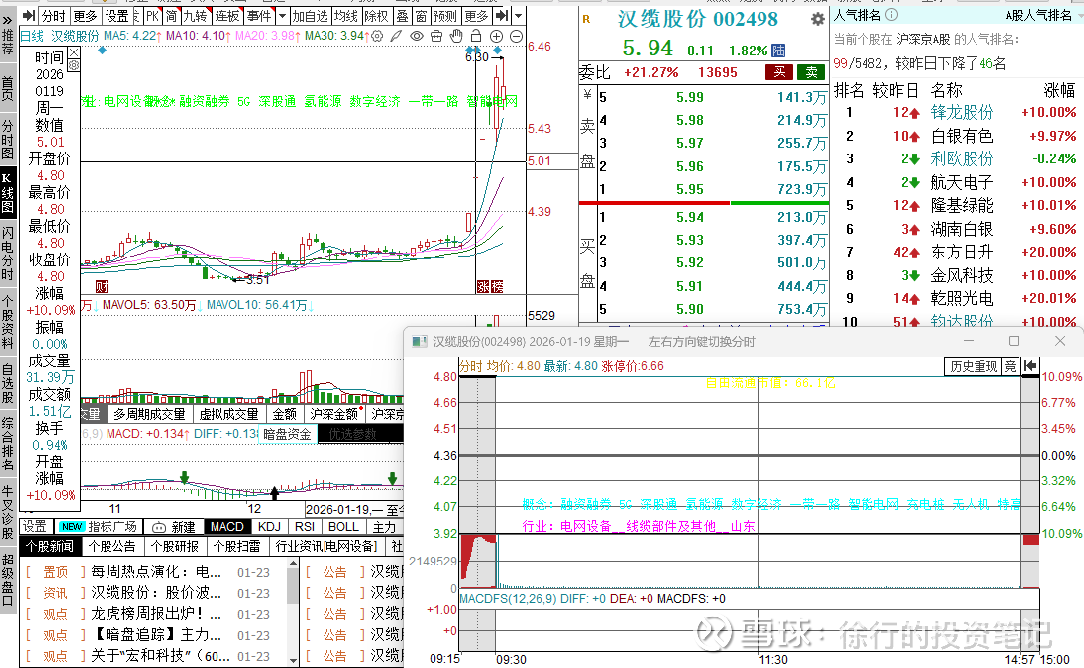 举个例子,本周一2026.1.24智能电网板块强势,汉缆股份顶了一字,有资金去做广电电气的换手板套利。这里面汉缆是兔子,广电是乌龟,同是智能电网的昨日首板。