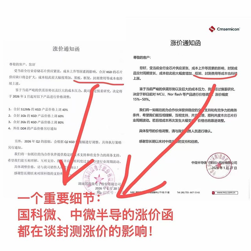 从几个芯片公司涨价函看,共同点就是封测价格的持续涨价,所以,封测公司今年一季度或许有非常不错的表现。$伟测科技(SH688372)$ $通富微电(SZ002156)$ $大港股份(SZ002077)$