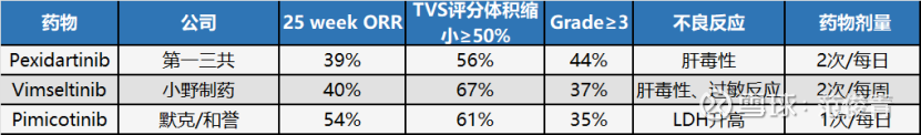 而匹米替尼在疗效和安全性层面都有更胜一筹的趋势。