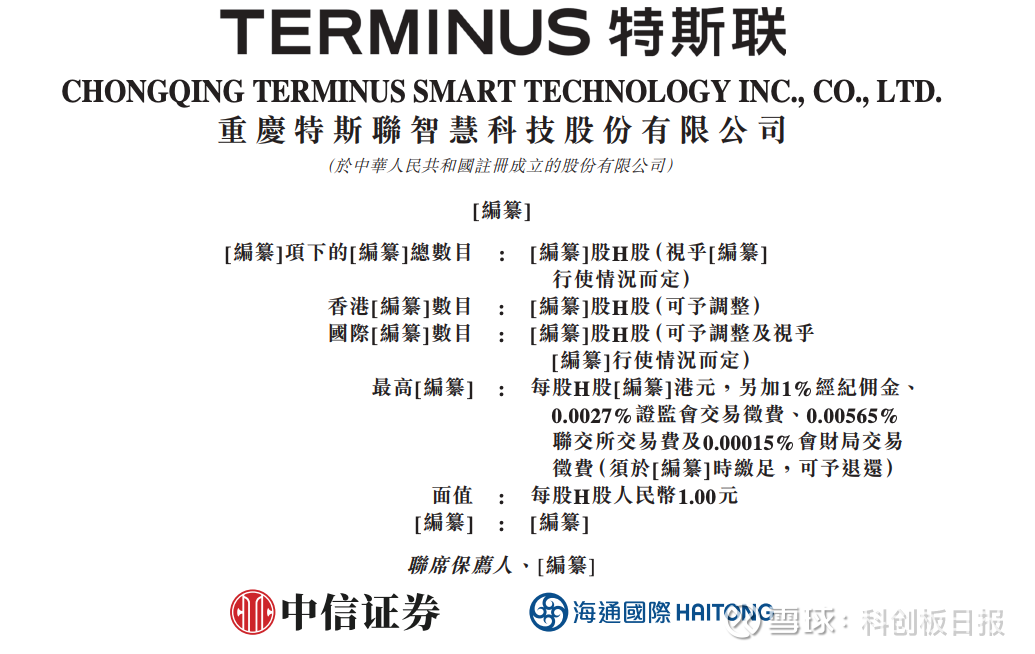 财联社9月26日讯(编辑 冯轶)9月26日,重庆特斯联智慧科技股份有限公司向联交所提交上市申请,拟香港主板上市,海通国际资本、中信证券香港为联席保荐人。