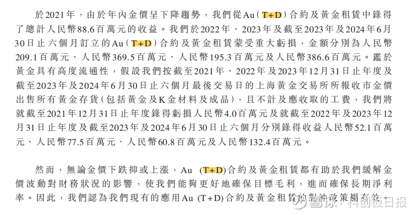 《招股书》显示,2022年、2023年和2024年上半年,梦金园“其他收益及亏损净额”项分别亏损2.09亿元、3.7亿元和3.87亿元,累计亏损达9.66亿元。该项主要包括就Au(T+D)合约及黄金租赁产生的收益或亏损。这一数据无疑揭示了梦金园在金价波动中面临的巨大挑战。