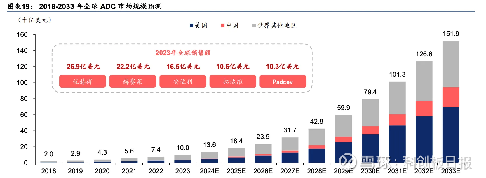 而据华泰证券的研究显示,2023年全球ADC市场规模达101亿美元,预计将以31.1%的复合增速增长至 2033年的1519亿美元水平,同期ADC占整个肿瘤市场的份额预计将由4.5%增加至26.4%。
