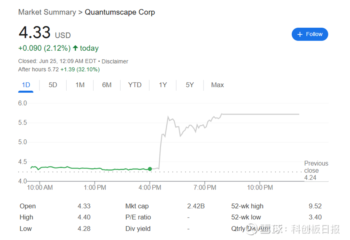 受此消息影响,QuantumScape美股当地时间周二盘后涨超30%。