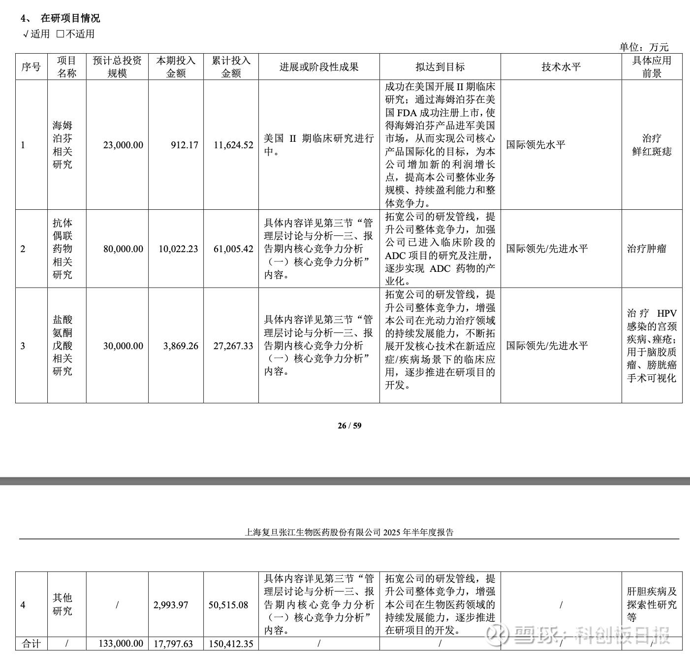 在研项目方面,复旦张江截至上半年末共有4大项目,包括海姆泊芬相关研究、抗体偶联药物相关研究等。