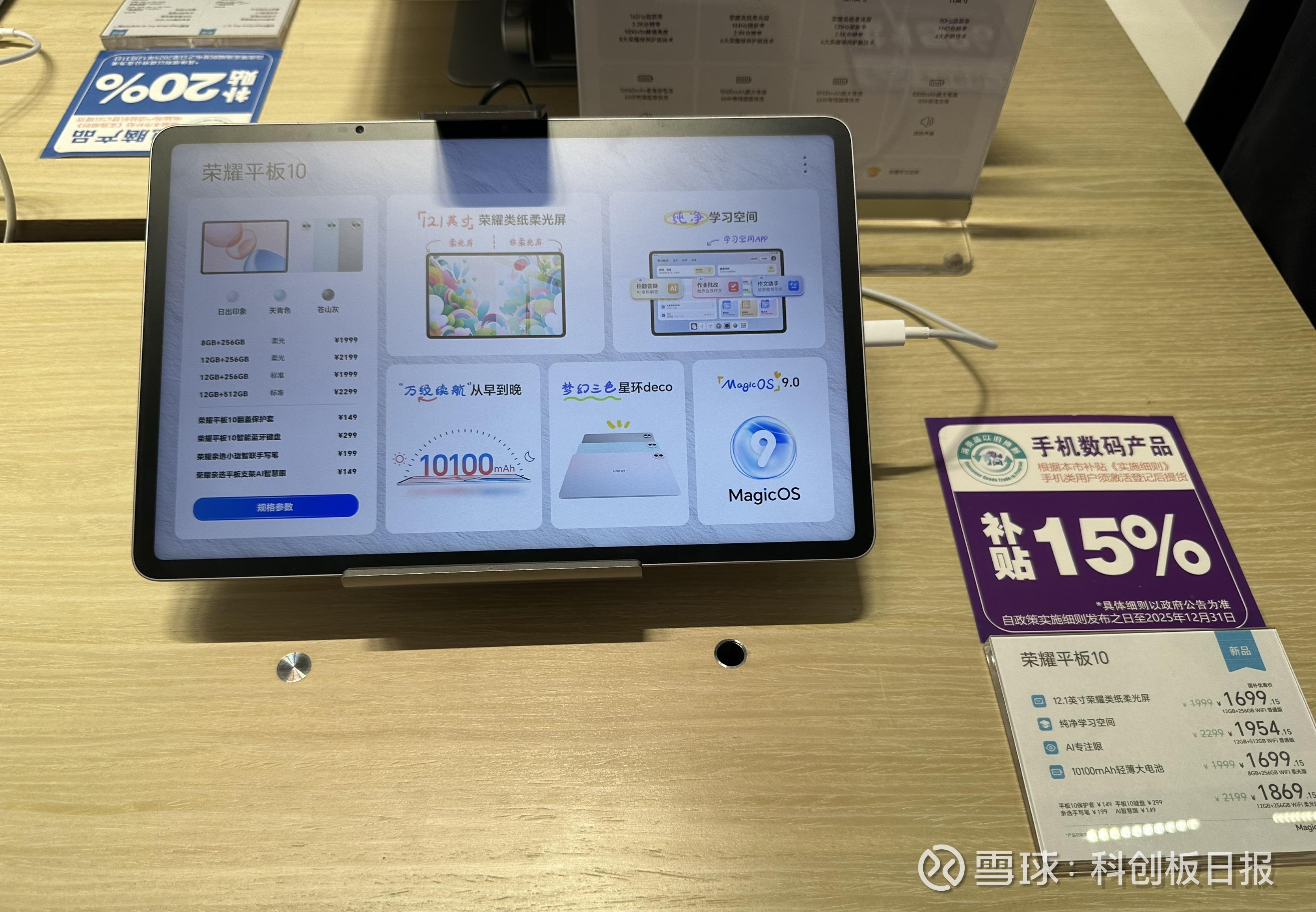 财联社记者采访获悉,较便宜的千元价格带产品带动了智能平板的整体销量。据上海一家荣耀授权体验店销售人员介绍,国补优惠后基础售价为1699.15元起的荣耀平板10是该门店销量最大的平板。洛图科技(RUNTO)线上监测数据显示,今年上半年,荣耀在线上公开零售渠道TOP5品牌(Apple、华为、小米、荣耀、联想)中销量涨幅最高,达55.6%,X9、X8等千元价位机型贡献较大。