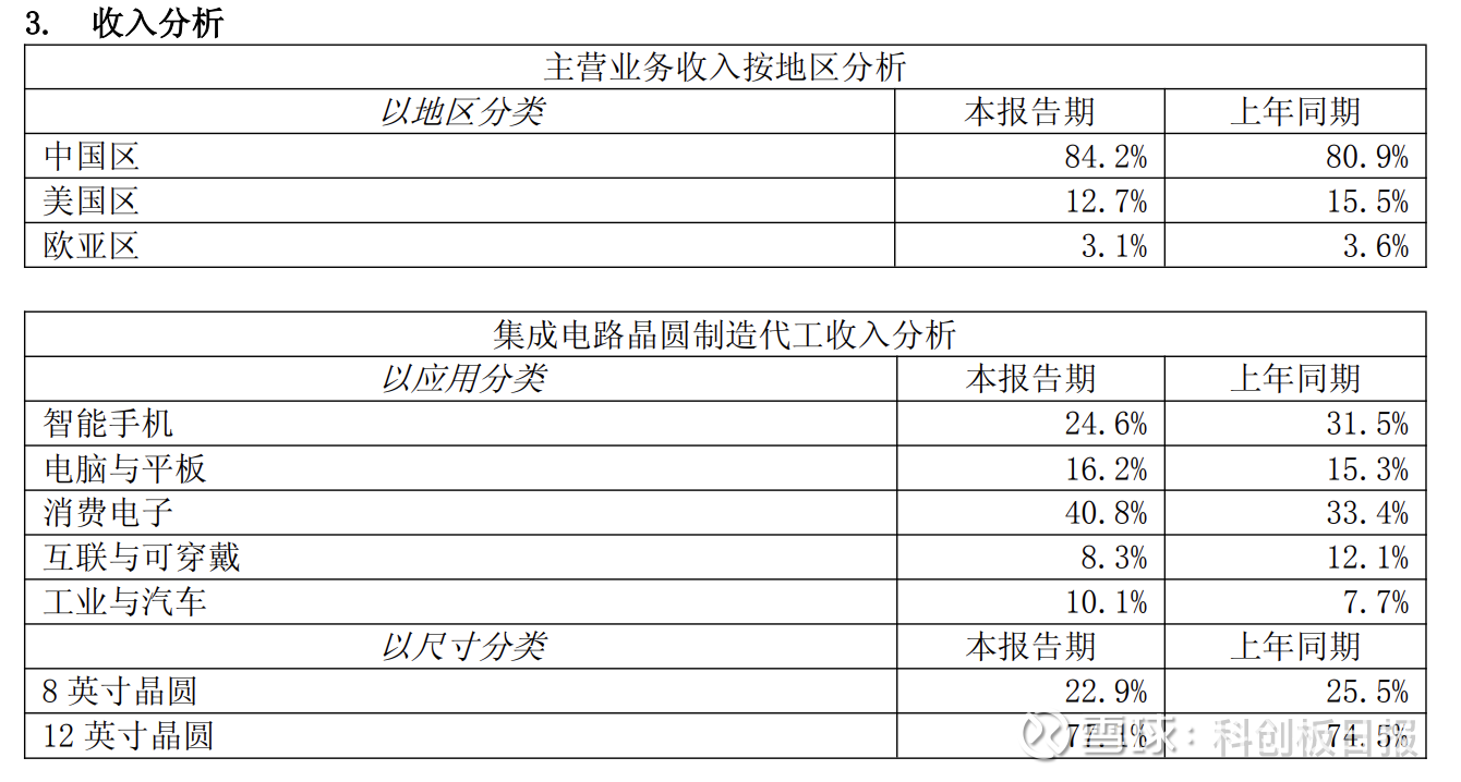 以应用分类,智能手机收入占比下降,从上一年同期的31.5%降至24.6%;电脑与平板收入占比提升至16.2%;消费电子收入占比提升至40.8%;工业与汽车收入占比提升至10.1%。