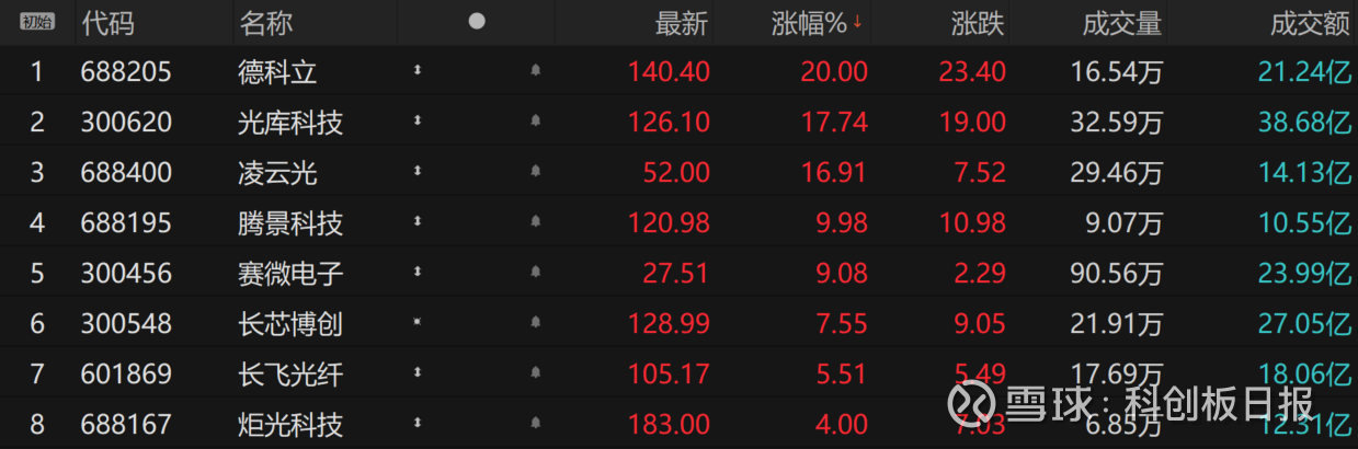 《科创板日报》9月18日讯 AI产业链的掘金潮,正从PCB、CPO蔓延至更多分支。今日,OCS概念股集体爆发。截至发稿,德科立20CM涨停,光库科技涨超17%,凌云光涨超16%,腾景科技、赛微电子、炬光科技等纷纷上涨。