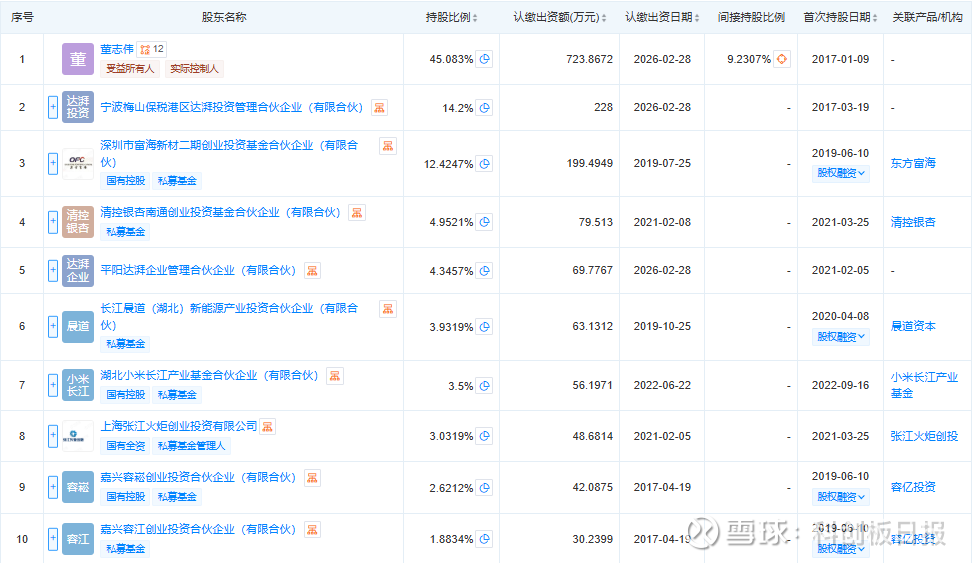 此外,该公司前十大股东中还包括湖北小米长江产业基金合伙企业(有限合伙)、上海张江火炬创业投资有限公司、嘉兴容崧创业投资合伙企业(有限合伙)这类国有资本,上述机构分别持有荣湃半导体3.5%、3.0319%、2.6212%股份。