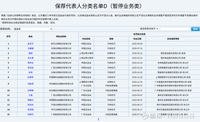 D类展示的是资格罚,采取动态更新机制,非固定名单,资格罚毕就会离开榜单,主要与保代被具体采取的监管措施以及其期限挂钩有关。后续,赵善军或将离开这一公示信息名单中。