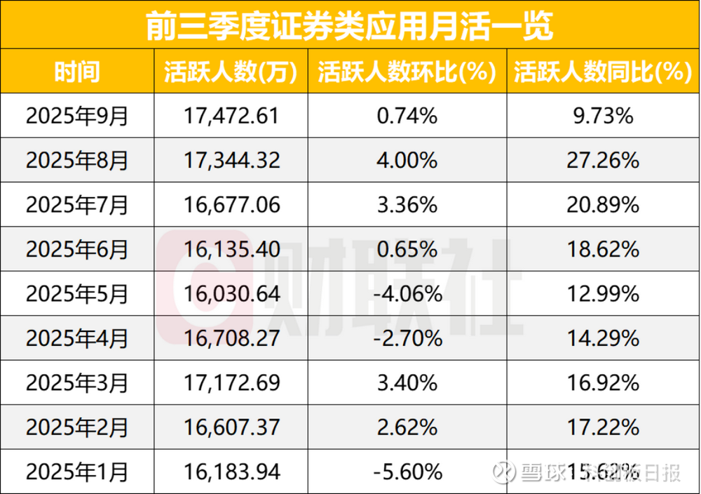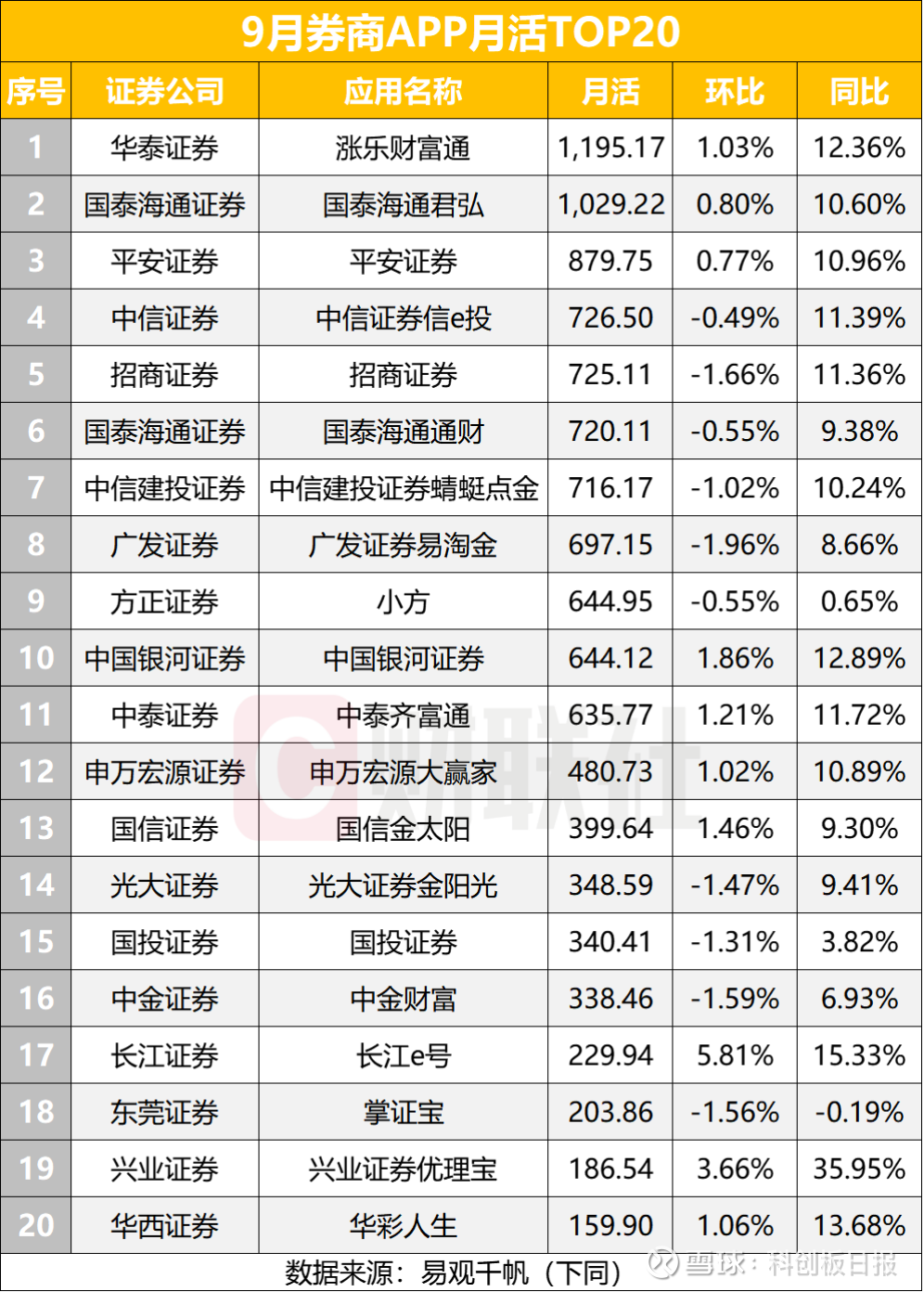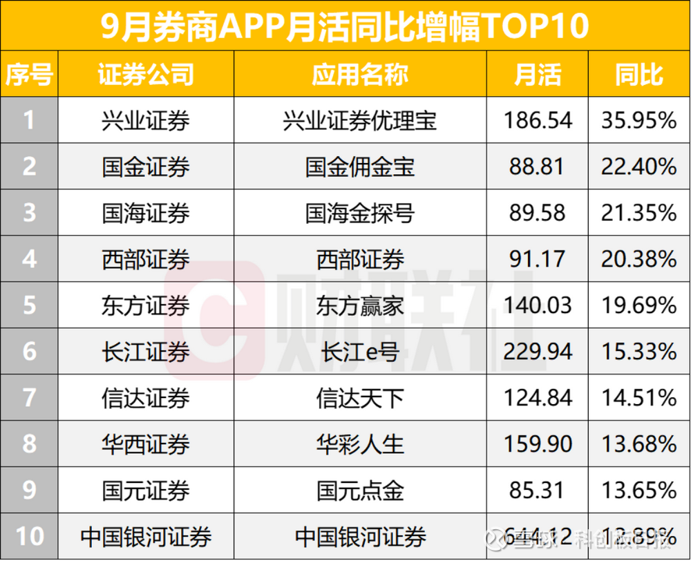20家券商APP月活同比增幅超过10%