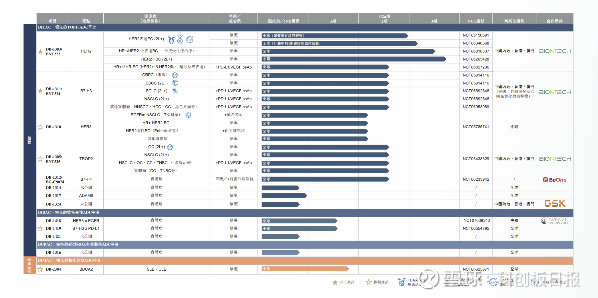 除此之外,映恩生物的HER3 ADC产品DB-1310、TROP2 ADC产品 DB-1305/BNT325,目前也同步推进至I/II期临床试验阶段。