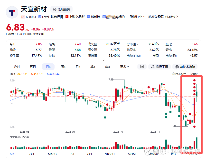 该消息一出,更带动一众概念股股价异动。今日(11月28日),通宇通讯股价涨停,天宜新材等关联企业近期股价也表现突出,近5个交易日累计涨幅超23%。