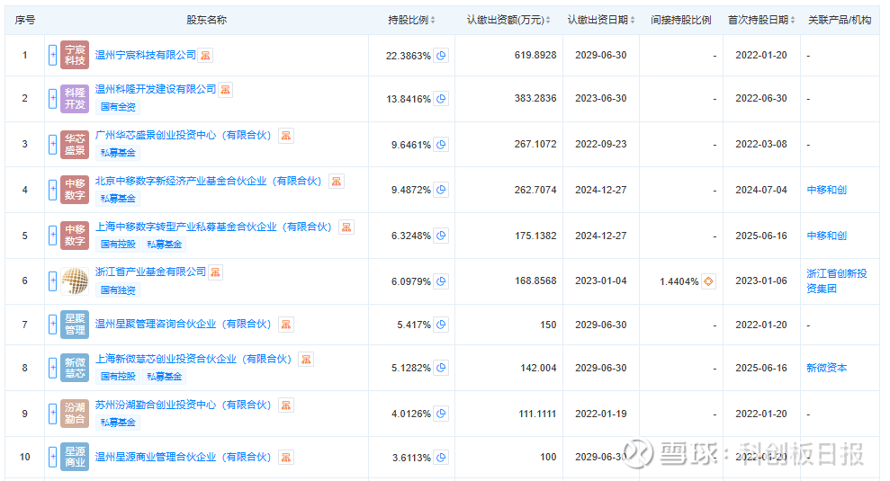 从股权结构方面来看,工商信息显示,星曜半导体前五大股东多为国有资本和产业私募基金,包括温州宁宸科技有限公司、温州科隆开发建设有限公司、广州华芯盛景创业投资中心(有限合伙)、北京中移数字新经济产业基金合伙企业(有限合伙)、上海中移数字转型产业私募基金合伙企业(有限合伙),持股比例分别为22.3863%、13.8416%、9.6461%、9.4872%、6.3248%。