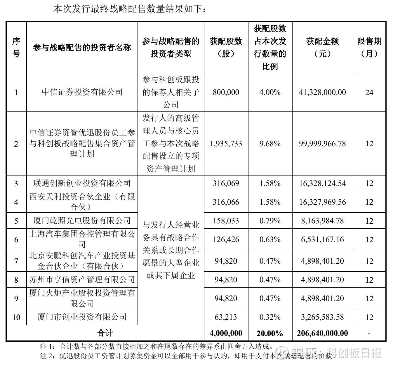 从本次发行最终战略配售数量结果来看,联通(联通创新创业投资有限公司)、上汽(上海汽车集团金控管理有限公司)、北汽(北京安鹏科创汽车产业投资基金合伙企业)等通信、汽车领域终端龙头,纷纷参与优迅股份本轮战略配售。