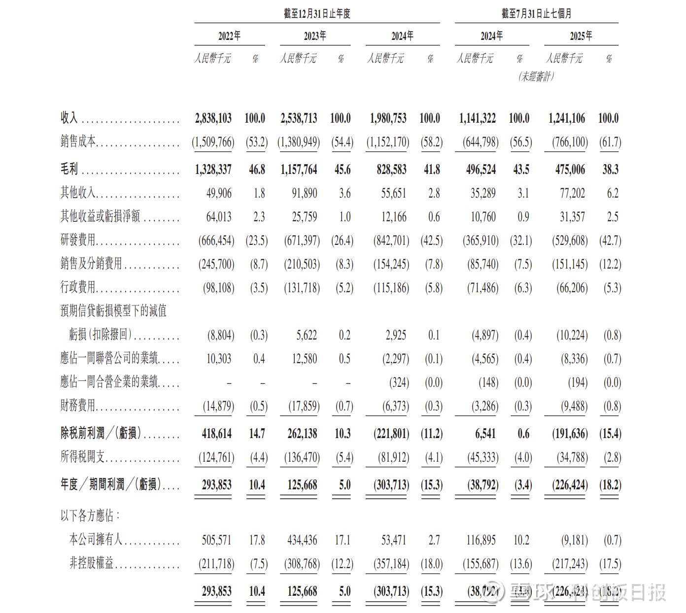 业绩层面,巨石生物因处于研发持续投入的阶段,营收尚不能覆盖支出,仍处于亏损状态,2024年及2025年上半年分别净亏损7.29 亿元、3.76亿元,同期研发费用分别为7.7亿元、4.2亿元。