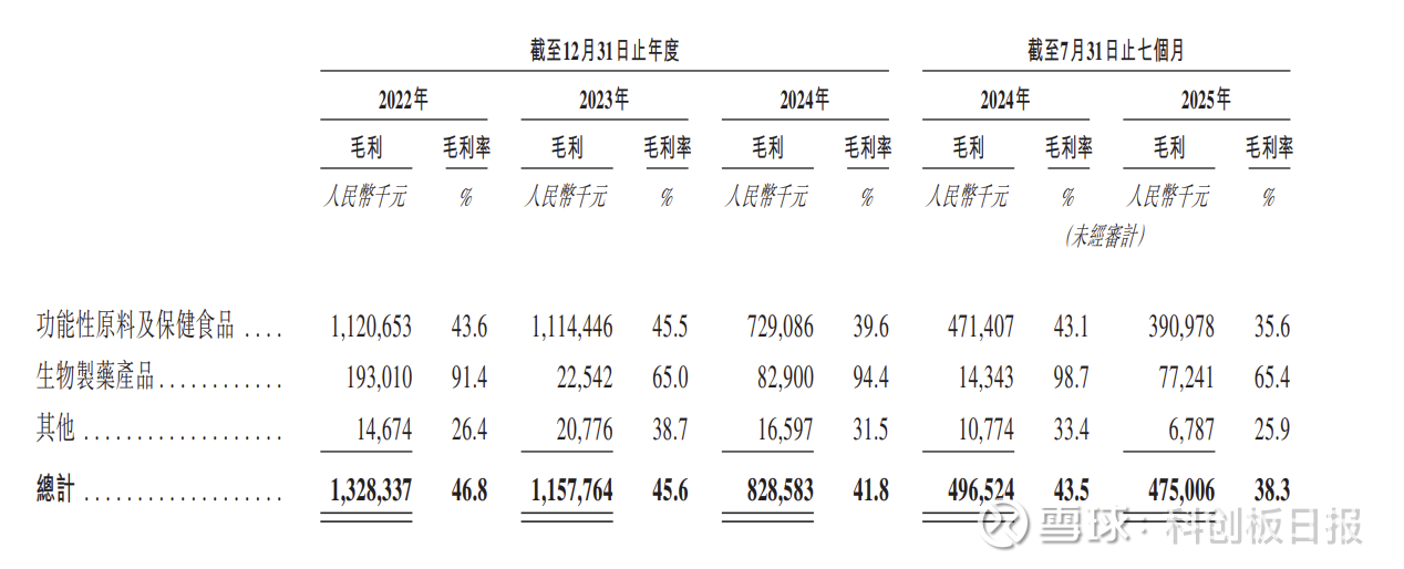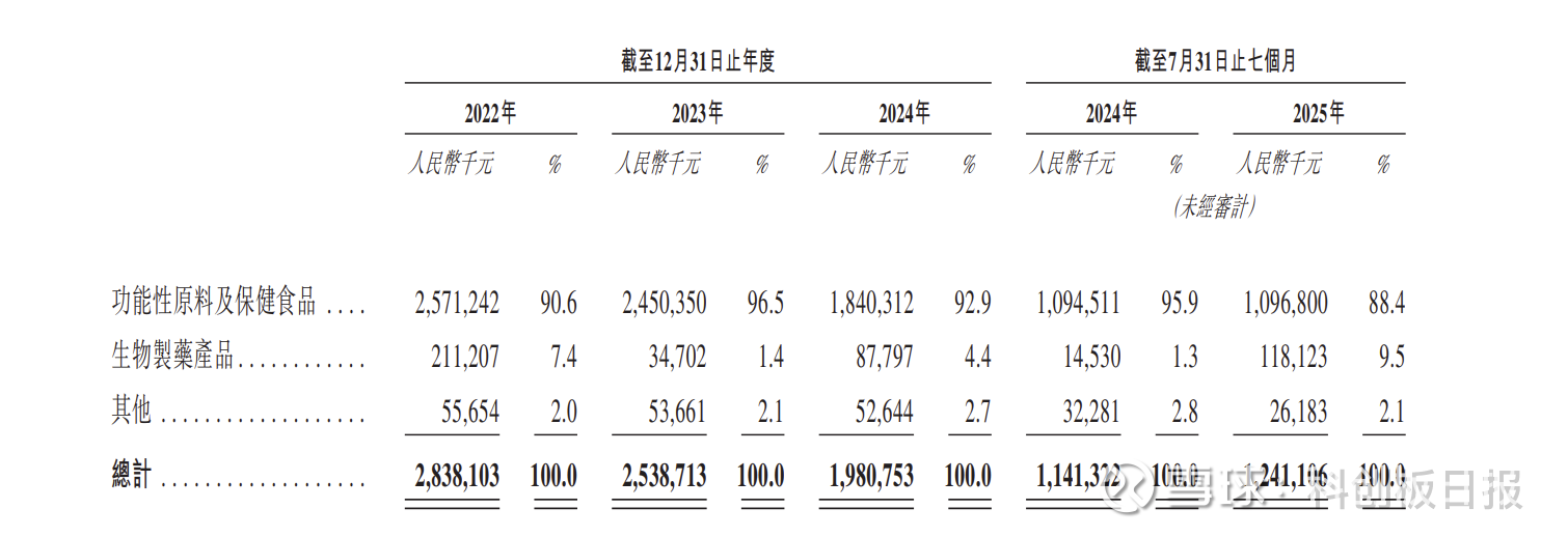 2022年,石药创新的功能性原料及保健食品业务营收为25.71亿元,直至2024年该业务营收持续处于下滑通道,2025年也未现出现好转,前7个月收入仅为10.97亿元,毛利率则进一步下滑至35.6%。