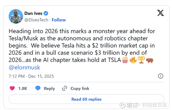 艾夫斯强调,2026年或将成为特斯拉的 “爆发之年”