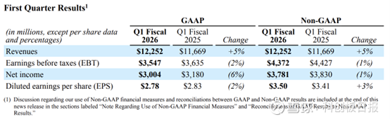 财报显示,高通第一财季营收为122.5亿美元,同比增长5%,略超市场预期的122.1亿美元;调整后净利润为37.81亿美元,同比下降1%;调整后每股收益为3.50美元,同比增长3%,预期为3.41美元。