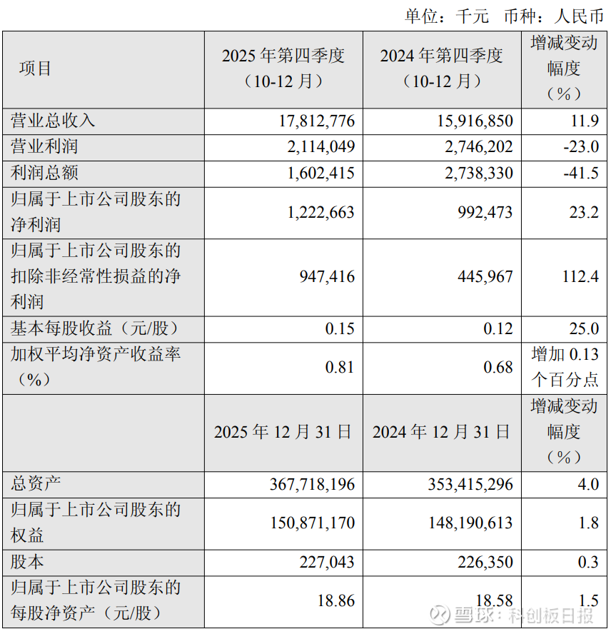 值得一提的是,业绩快报显示,中芯国际2025年第四季度的利润总额为16.02亿元,同比下降41.5%。对此,公司在公告中表示,2025年第四季度利润总额较上年同期减少,主要是由于本季度财务费用上升及投资收益下降所致。2025年第四季度归属于上市公司股东的扣除非经常性损益的净利润较上年同期增加,主要是由于本季度晶圆销售量增加、产能利用率上升及产品组合变动所致。