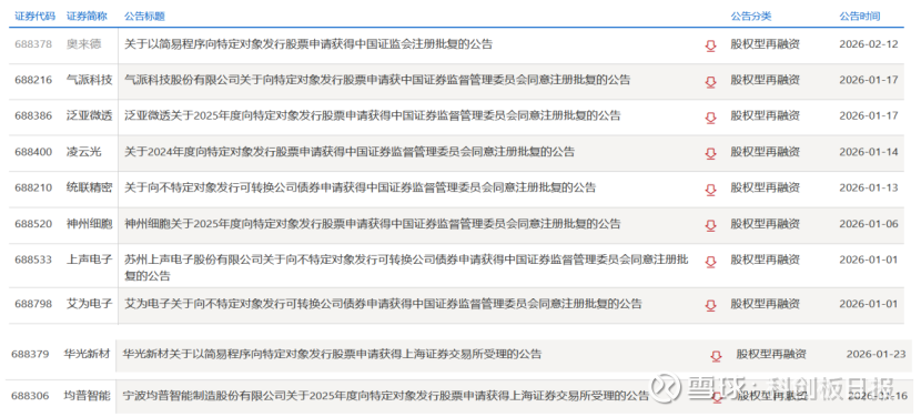 2026年开年以来,A股市场股权型再融资节奏明显加快,主板及科创板多家公司定增、可转债等融资事项相继获批或获受理。