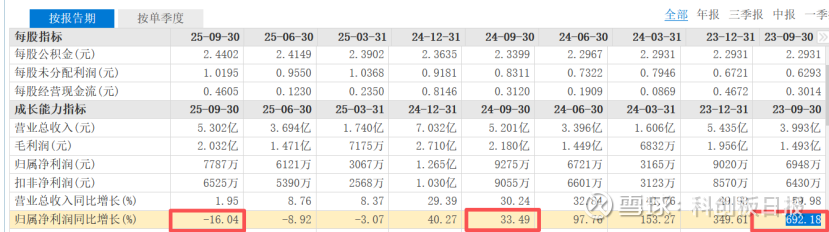 业绩方面,2025年前三季度,公司实现净利润0.78亿元,同比下降16.04%,增速较2024年同期的33.49%显著放缓,也远低于2023年同期692.18%的同比增速。