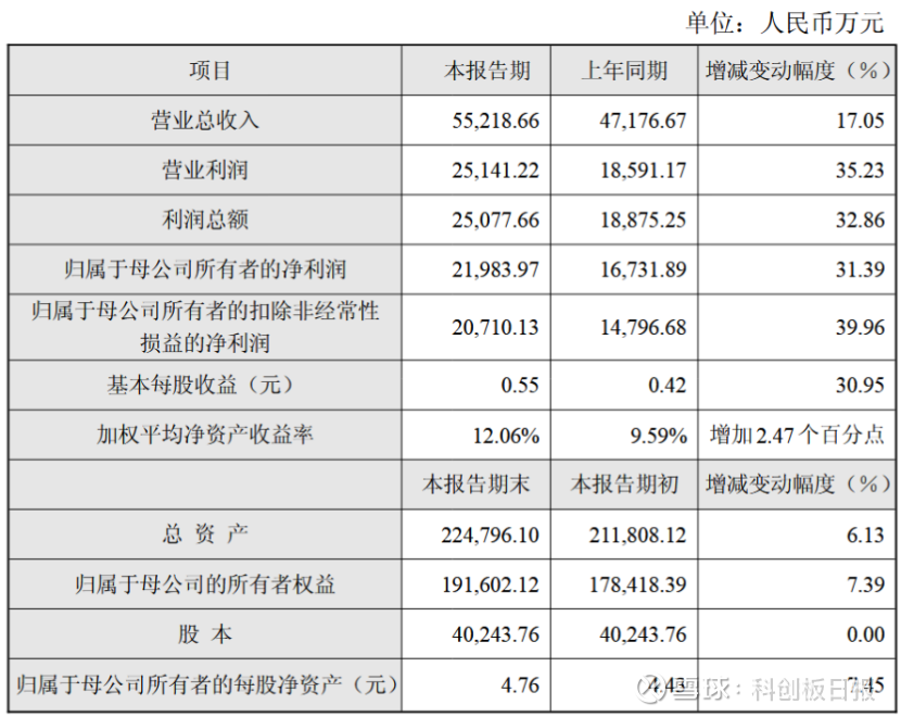 报告期内,该公司实现营业总收入5.52亿元,同比增长17.05%;实现净利润2.2亿元,同比增长31.39%。