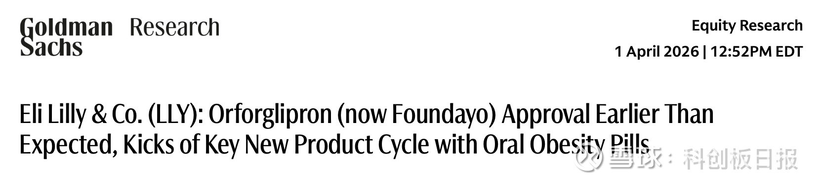 以Asad Haider为首的高盛分析师4月1日发布了报告,详细分析了礼来口服GLP-1减肥药Orforglipron(现名Foundayo)获批的影响及公司财务前景。