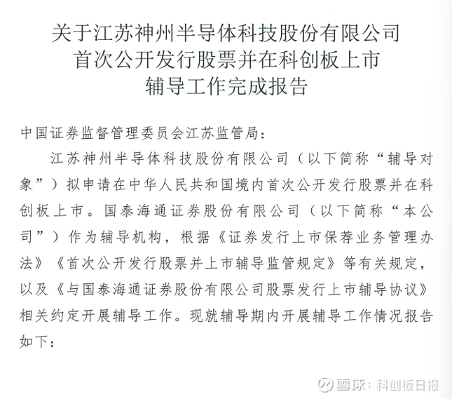 辅导工作完成报告显示,神州半导体拟申请IPO并在科创板上市。据悉,该公司2025年12月17日向江苏证监局提交IPO辅导备案,辅导工作历时约3个半月。