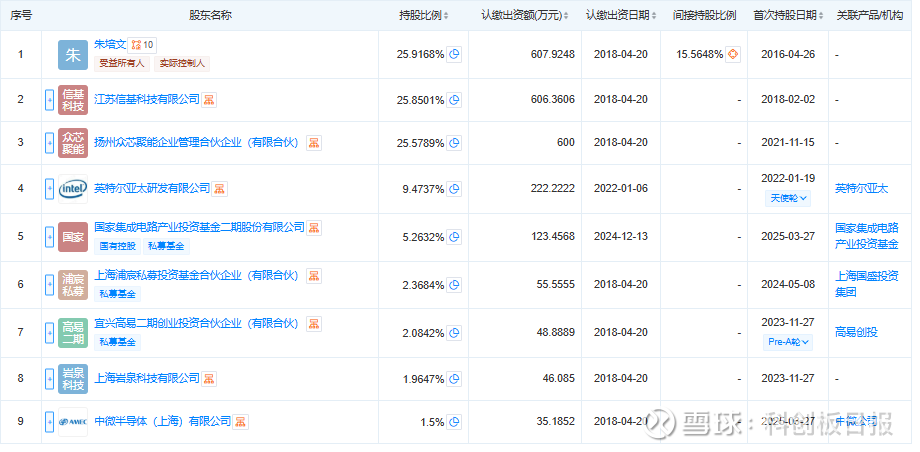 除朱培文之外,工商信息显示,神州半导体股东列表还包括英特尔亚太研发有限公司、国家集成电路产业投资基金二期股份有限公司、上海浦宸私募投资基金合伙企业(有限合伙)、宜兴高易二期创业投资合伙企业(有限合伙)、上海岩泉科技有限公司、中微半导体(上海)有限公司,持股比例分别为9.47%、5.26%、2.37%、2.08%、1.96%、1.5%。