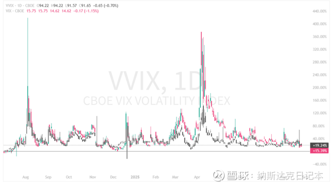 当前 VVIX 与 VIX 在英伟达财报前小幅回升,但尚未出现大幅放大迹象,显示市场风险偏好整体可控,投资人情绪仍偏向观望而非恐慌。
