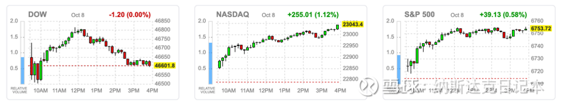 美股周三延续涨势,标普500与纳指双双刷新历史新高。市场对“AI投资泡沫”的担忧在英伟达CEO黄仁勋的安抚讲话后暂时降温,AI龙头股全面反弹,带动整体科技板块上行。收盘时,标普500指数涨0.58%,纳指涨1.12%,道琼斯指数持平。