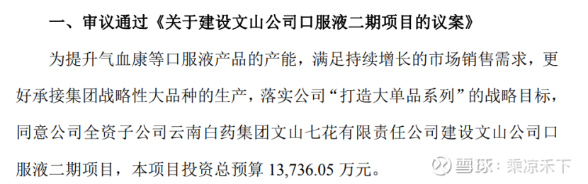 2025年半年报显示:“植物补益类产 品,气血康口服液销售收入达 2.02 亿元,同口径下同比增长约 116.2%”。通过以上文字分析,气血康口服液大概率全年销售收入在4亿元以上,加上三七参峰口服液的增长,公司才决定上上马口服液二期项目。