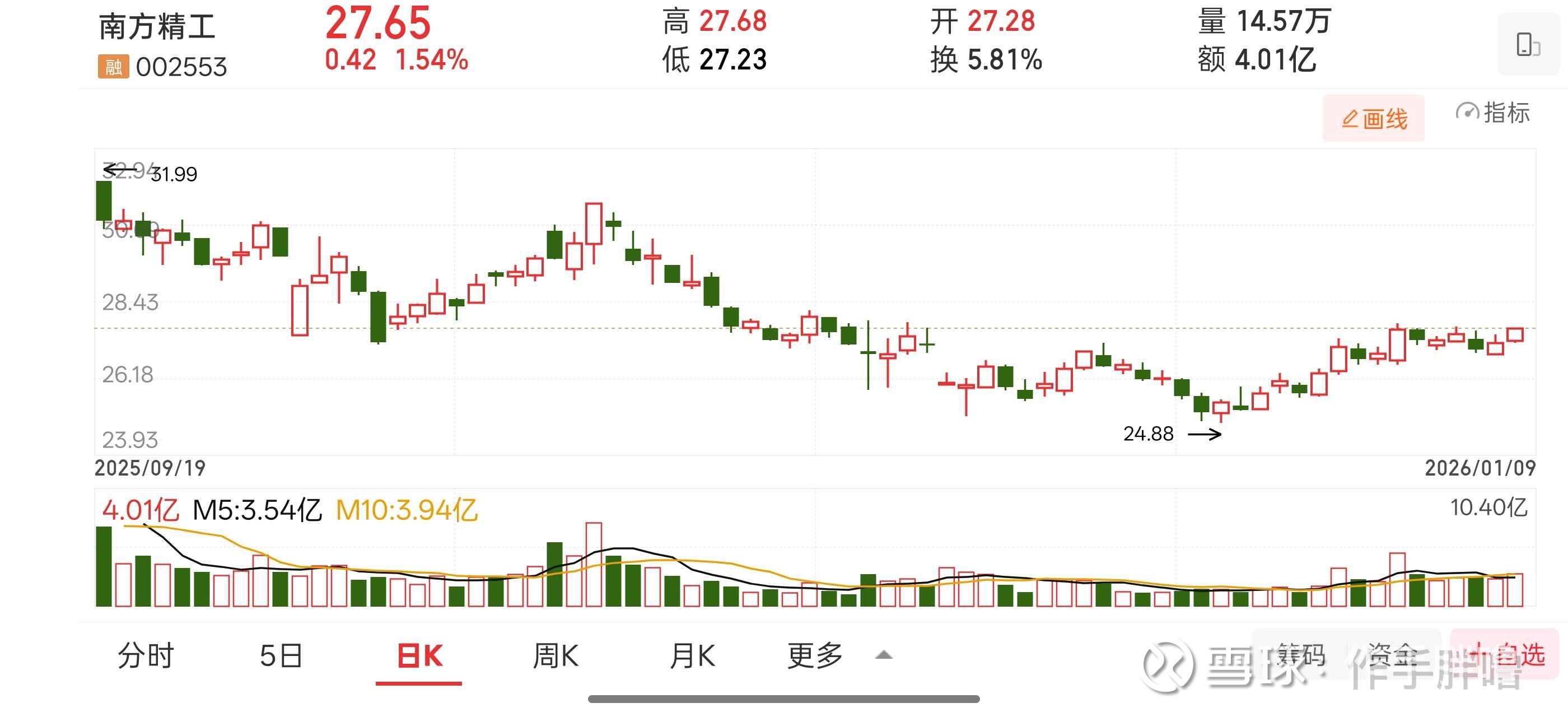 1月9日新开仓,买入价格27.47,目前浮盈0.64%。人形机器人以前的人气龙头,做人形机器人低位补涨。